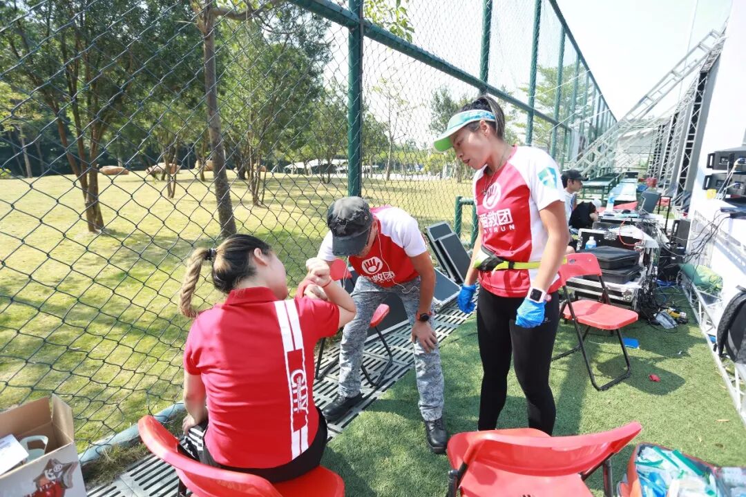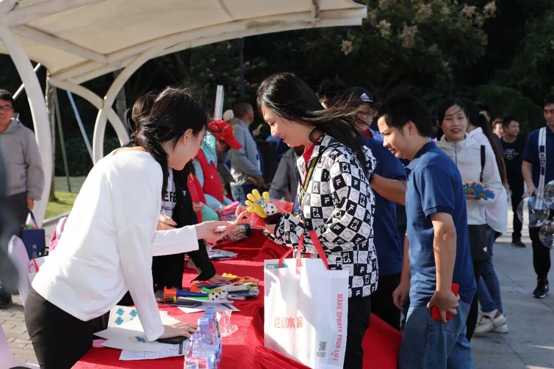 8:30am 签到处人头攒动,热闹非凡,贴心的党委志愿者姑娘们为大家送上加油道具和氛围贴纸,为运动会增光添彩。